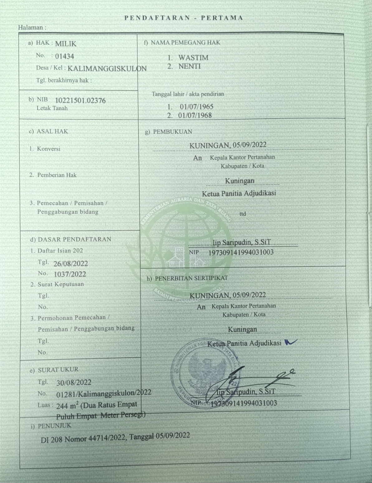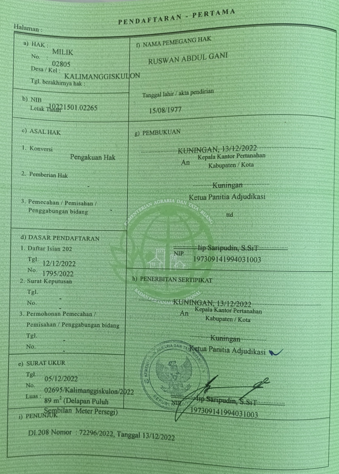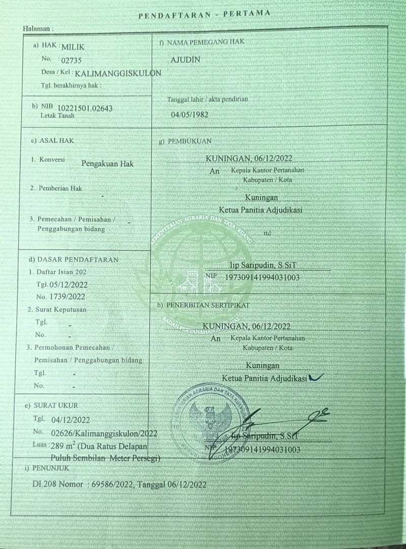 22 | 3208271001870002 | ARA | Pahing | 011 | 002 | Belum | |