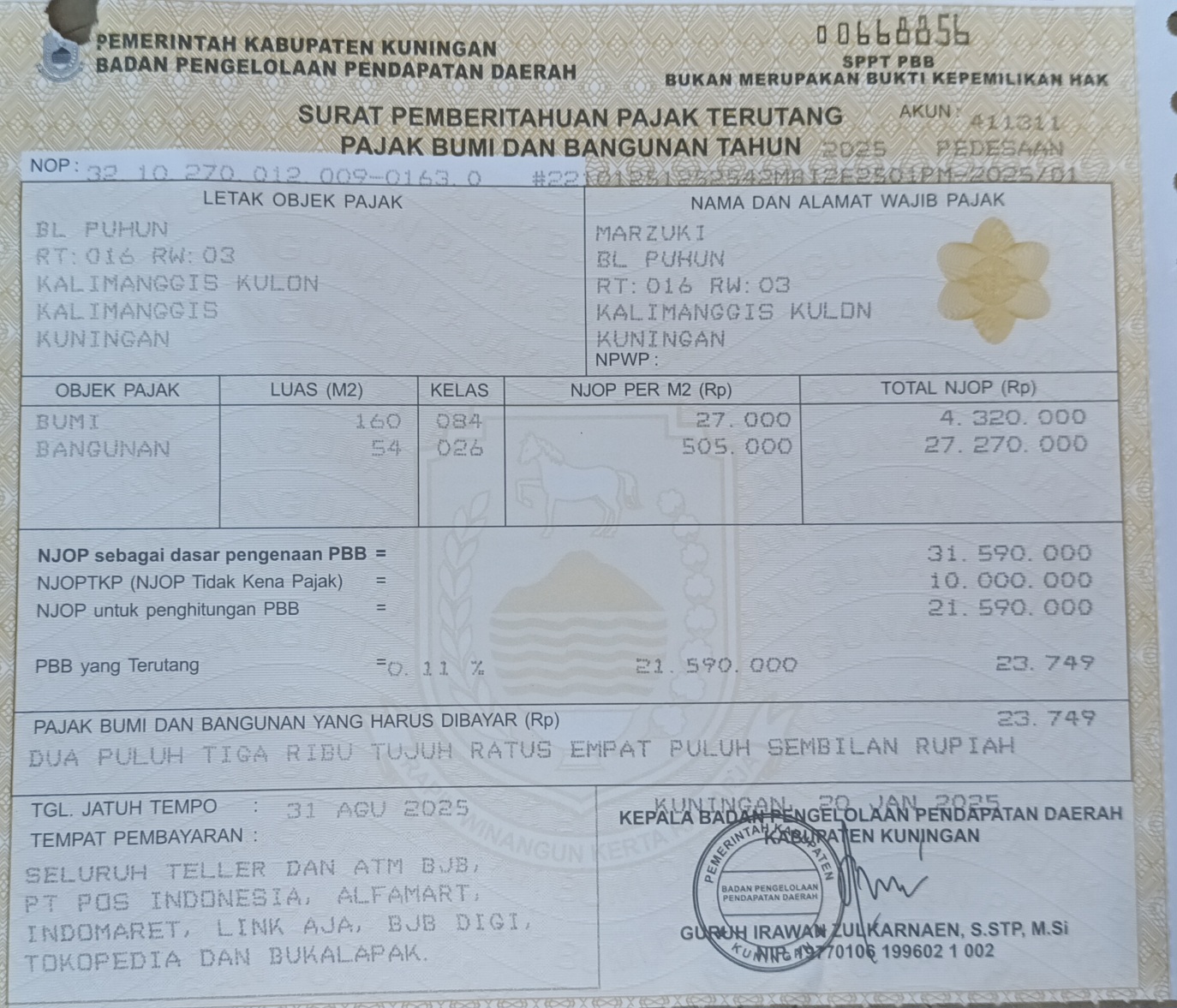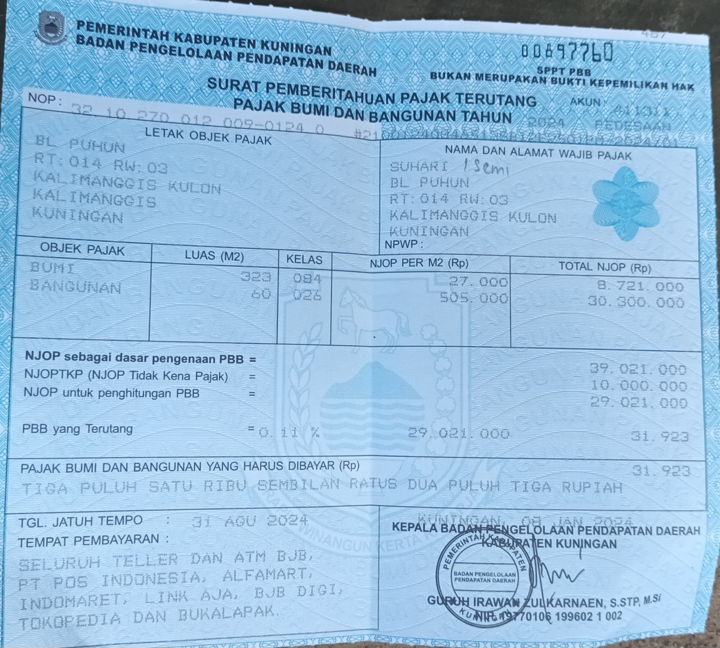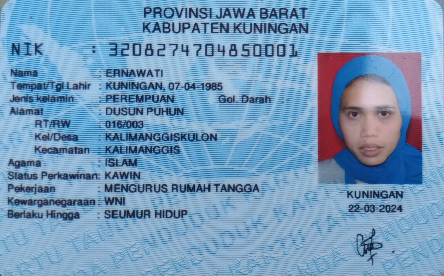 61 | 3208274107550003 | ODAH | Kliwon | 031 | 005 | Belum | |