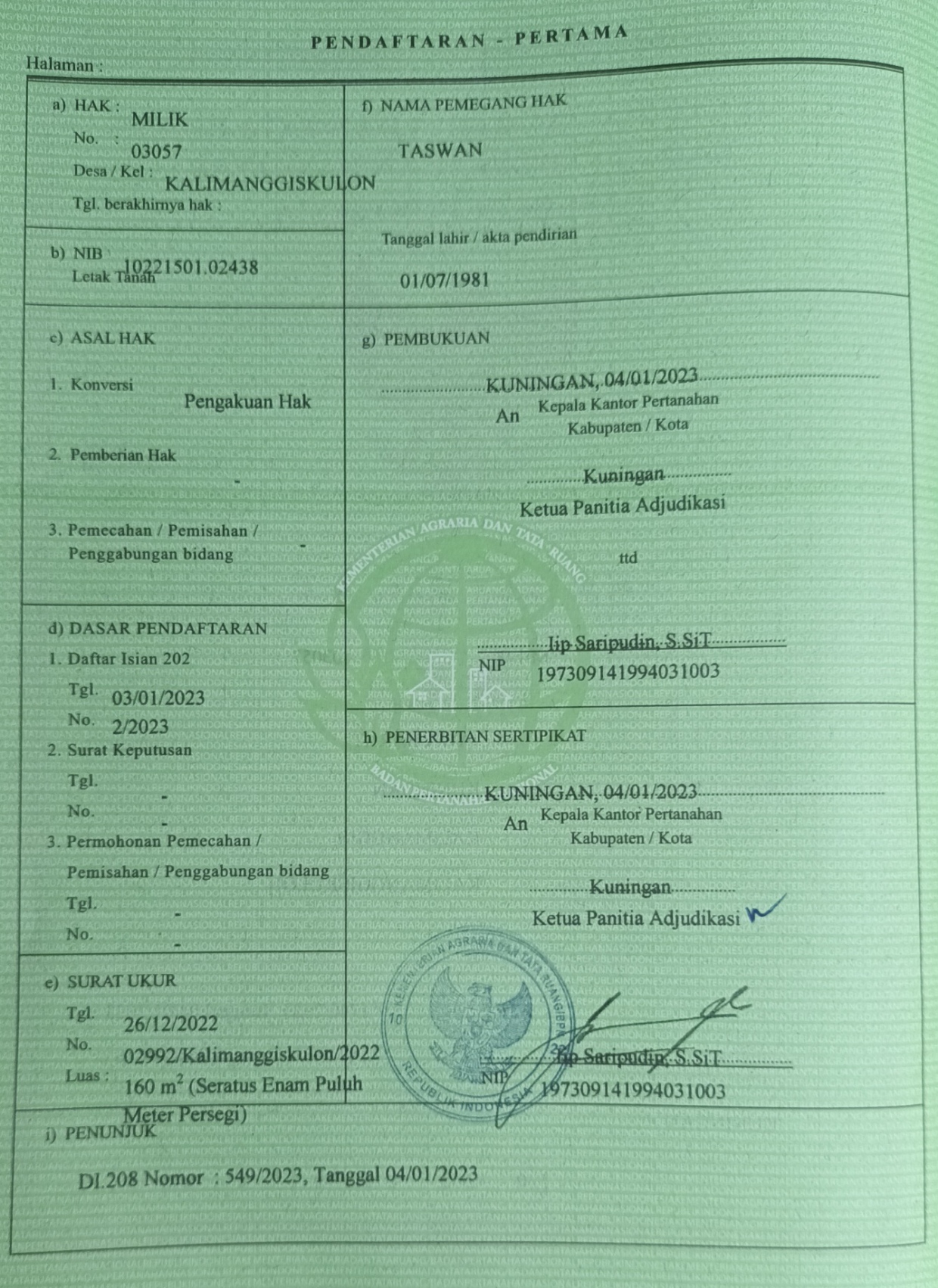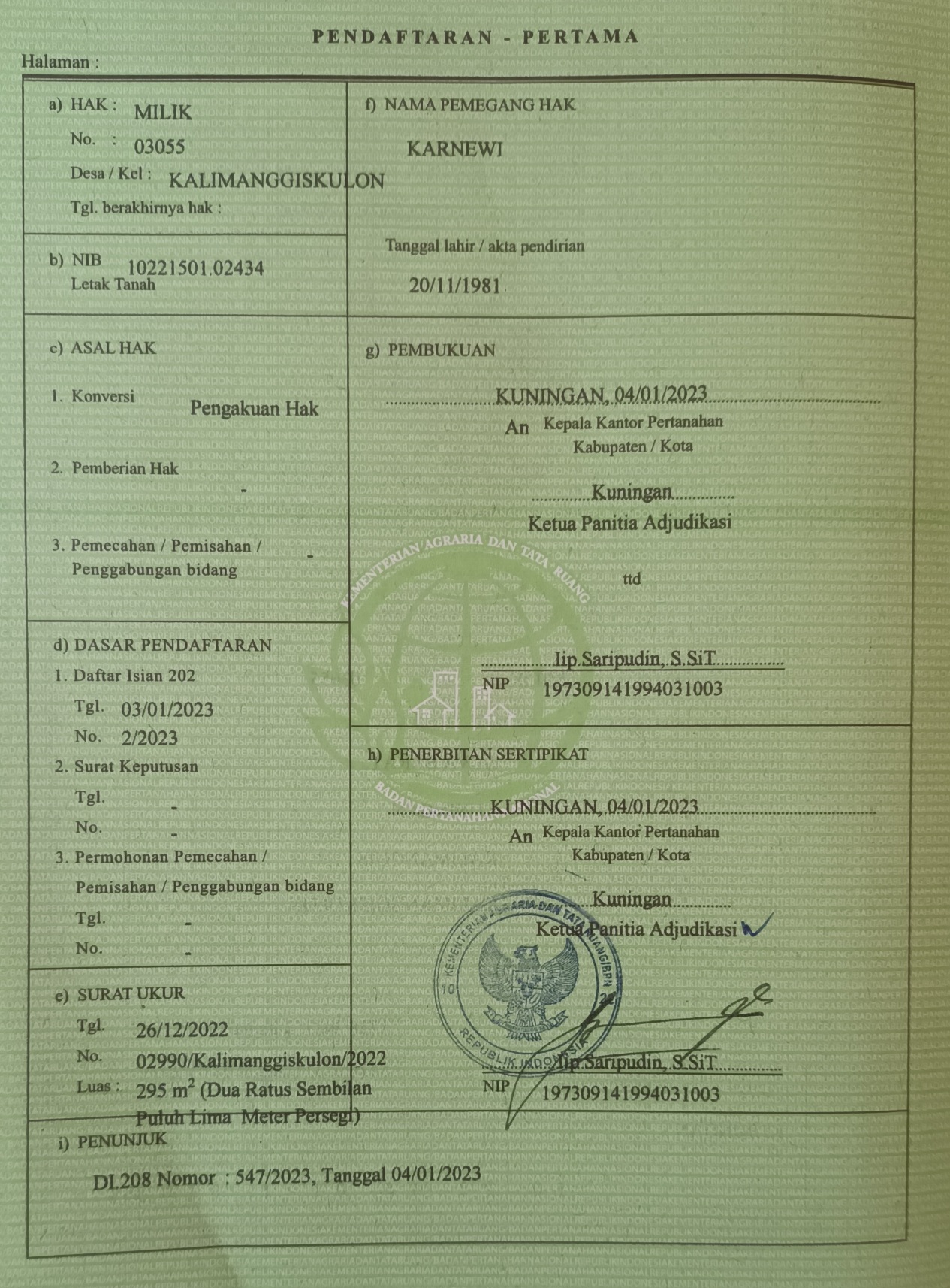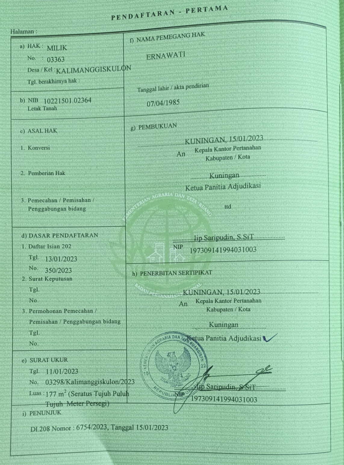 23 | 3208272302500001 | JONIH | Pahing | 011 | 002 | Belum | |